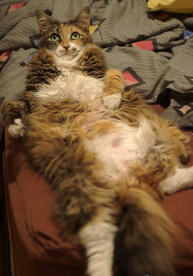 Конечно, понимаю, что такое обжорство - плохо. Но эти коты такие прикольные, такие уютные. У нас дома живёт кошка, так она лишний кусок не съест. За фигурой, наверное, следит ;-) А тут такие увольни!