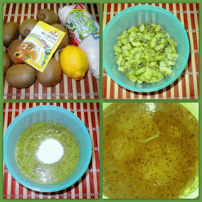 Пропустить киви через блендер и облить лимонным соком.