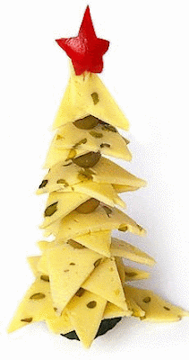 Для приготовления ёлки из сыра Вам понадобятся: сыр (нарезка), оливки без косточек, кусочек огурца, кусочек перца для звёздочки.