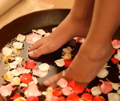 В таз с горячей водой вылейте стакан молока, стакан густого мыльного раствора ( сделайте его из жидкого мыла) и всыпьте 3 ст л соли. Размешайте, чтобы соль растворилась, и держите в ванночки ноги от 30 минут до часа. По необходимости добавляйте горячую воду, чтобы поддерживать температуру примерно 50 градусов.