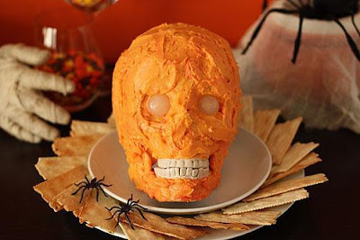 Второй вариант. Сырный череп перед подачей на стол можно полить соевым соусом, в который добавлено несколько капель красного пищевого красителя. Плюс кунжутные семечки. Простая в приготовлении закуска на Хэллоуин "Друзья Джека" разнообразят вашу вечеринку.