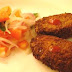 Интересный салатик получается из баклажана с горошком, яйцом и яблоком.