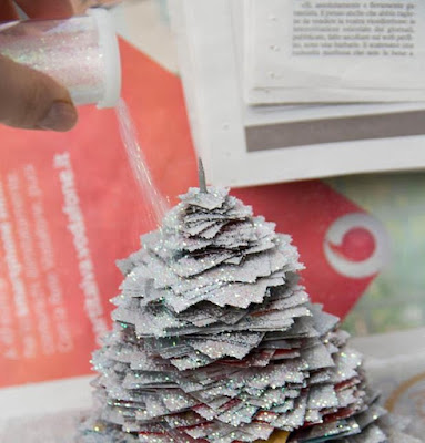 Можно сделать огромное количество вариаций этой елочки из разной бумаги, используя разные краски и посыпки.