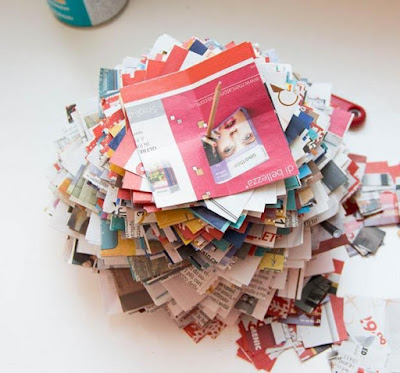 достаточно много бумаги (я изрезала толстую газету и пару-тройку рождественских буклетов)