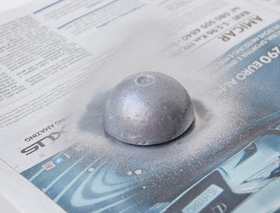По окружности полусферы вырежьте круг из фетра и покройте подставку краской из баллончика