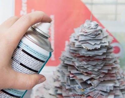 Затем покройте елочку клеем-аэрозолем