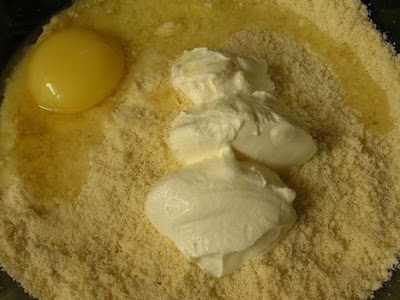Добавляем яйцо и сметану. Вымешиваем нежное, гладкое тесто. Скатываем его в шар и убираем в холодильник на 40 минут.
