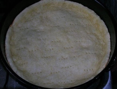 Готовое тесто выкладываем в форму для выпечки ( у меня разъемная, диаметром около 28 см) и пальцами разглаживаем пласт теста, формируя бортики высотой около 1,5-2 см.