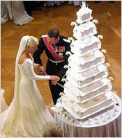 Фотосъёмка торжеств королевской свадьбы норвежского принца Хаакон и принцессы Мете-Марит позволяет увидеть нам настоящий королевский торт. Общий вес торта составил 140 кг (!), высота торта достигала 2,69 метров. Королевский торт состоял из семи ярусов. Бисквит, начиненный изюмом, был пропитан ромом и украшен изображениями кораблей викингов.