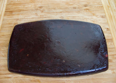 Потом осторожно постукиванием и покачиванием бортов коробки вытряхиваете пластину мармелада на доску, он достаточно сухой и практически не липнет к рукам.