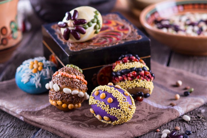 Сейчас в любом магазине можно купить «посыпку» для куличей. С ее помощью можно украсить и яйца. Выглядят такие яйца очень ярко и привлекательно, а украшение занимает считанные минуты. Нужно нанести на отваренные яйца клей и обвалять их в цветном сахаре.